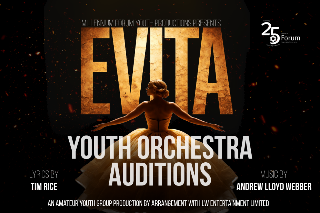 If you are aged 15 – 21 before 1st July 2026 and believe you have what it takes to be in the orchestra of this new production of EVITA at the Millennium Forum, make your way to the Forum for the auditions. Please note that all auditions must be booked in advance. To register your interest, click the following link: https://millenniumforum.co.uk/creative-learning/evita-orchestra-sign-up The closing date to book your audition slot is 5th March.